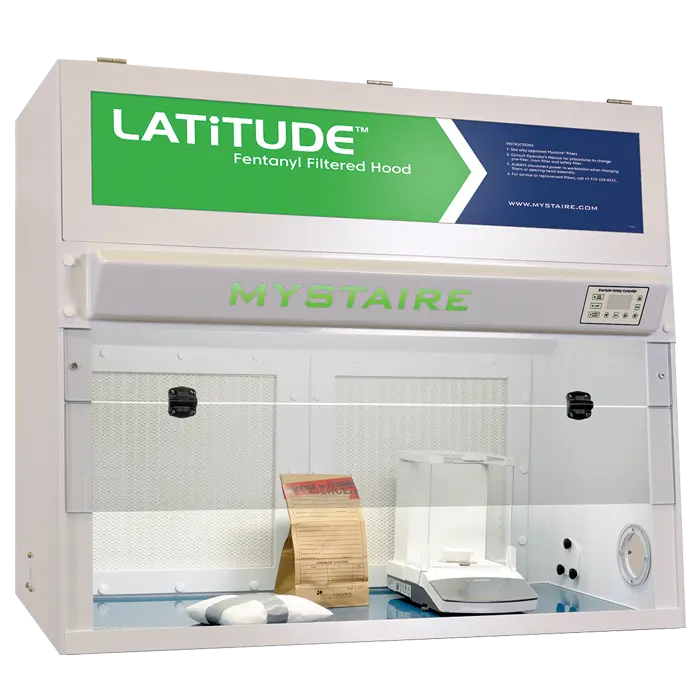 The Mystaire® Latitude Fentanyl Filtered Hood is designed for safe, effective containment of fentanyl and its analogues during manipulation and laboratory analysis. Exposure to fentanyl and other opioids can pose great danger to law enforcement personnel.